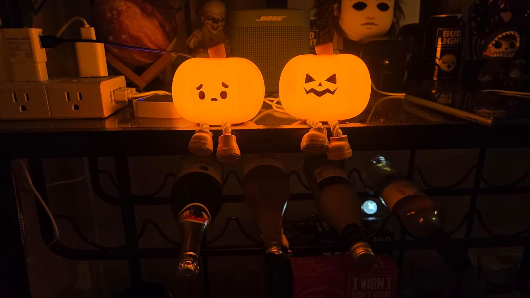 This cute pumpkin nightlight is perfect for adding a cozy touch to your Halloween decor or as a sweet little gift. It's lightweight, cordless, and made from soft silicone and ABS. Just charge it for 2-3 hours, and it’ll light up for 4-6 hours of warm, comforting glow. With its small size (3.3 x 3.7 inches), it’s perfect for any room, from your desk to your bedside table.