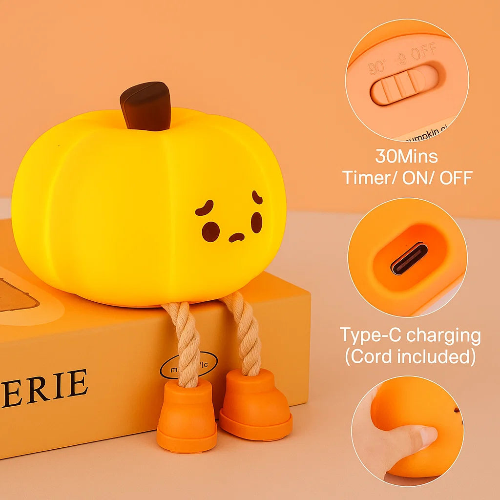 This adorable pumpkin nightlight features a convenient 30-minute timer and Type-C charging for easy use. Perfect for adding a cozy touch to any room!