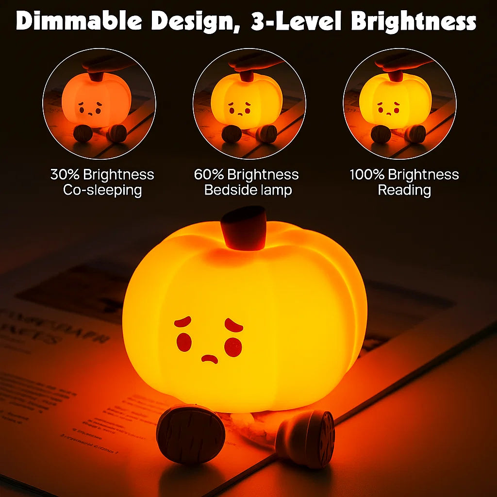 This adorable pumpkin nightlight features 3 adjustable brightness levels, perfect for a cozy night’s sleep, bedside lighting, or reading. Its cute design and soft glow create a comforting atmosphere in any room!
