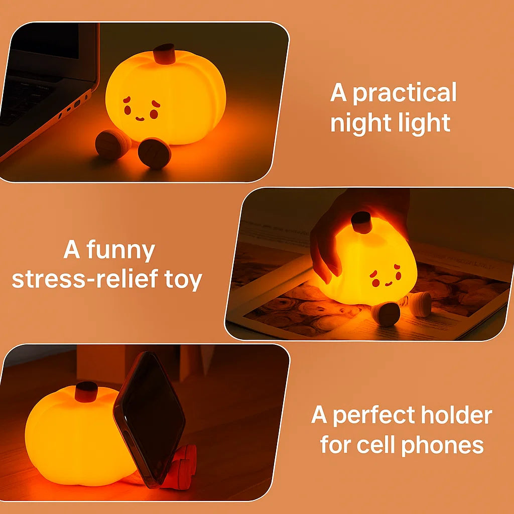 This adorable pumpkin night light is not just a cozy glow for your room—it also doubles as a fun stress-relief toy and a handy phone holder. Perfect for adding some charm and functionality to your space!